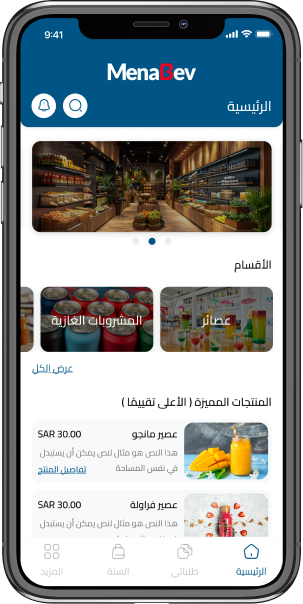 تطبيق MenaBev يوفر لك جميع أنواع المشروبات تحت سقف واحد، بدءًا من المشروبات الغازية المنعشة وصولًا إلى العصائر الطبيعية الطازجة، بفضل تصميمه البسيط وسهولة الاستخدام، يتيح لك التطبيق تصفح المنتجات وطلبها بسرعة وأمان، مع ضمان جودة عالية وتوصيل موثوق إلى باب منزلك، تجربة تسوق مريحة تُلبي احتياجاتك اليومية وتمنحك خيارات متنوعة بنقرة واحدة